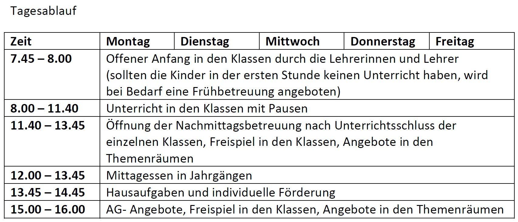 Nach der Unterrichtszeit am Vormittag werden Themenräume und mindestens ein Gruppenraum pro Jahrgangsstufe geöffnet. Die Kinder können dann frei wählen, wo und mit wem sie ihre freie Zeit verbringen.